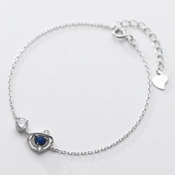 Fleepmart Planet Glitter Dreamy Blue Crystal Sweet 925 Sterling Silver Female Resizable Bracelets