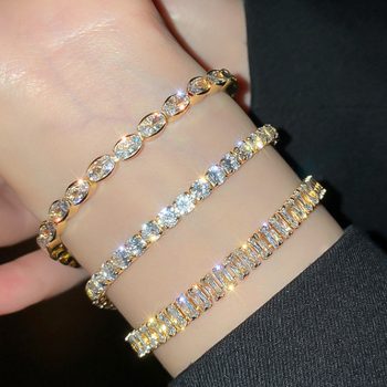 Fleepmart Exquisite Geometry Tennis Bracelets for Female AAA Cubic Zirconia Crystal Bracelets Bead Chain Party Jewelry Accessories Gift