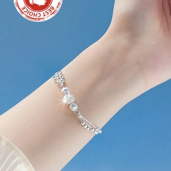 Fleepmart 925 Sterling Silver Round Bead Charm Bracelet &Bangle For Women Girls Party Bohemian Fashion Jewelry USA