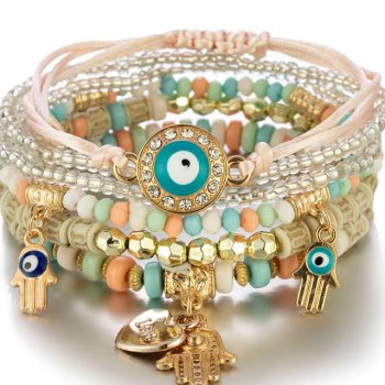 Fleepmart 6Pcs Handmade Beaded Fashion Bracelets for Women Eyes Design Temperament Multi-layer Bracelet Bangles Summer Jewelry