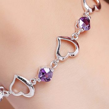 Fleepmart High Quality 925 Sterling Silver Bracelet Heart Purple Crystal Zircon Bracelet For Woman Party Engagement Jewelry Gift