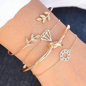 Flepmartv 4pcs/Set Fashion Bohemia Leaf Knot Hand Cuff Link Chain Charm Bracelet Bangle for Women Gold Bracelets Femme Jewelry