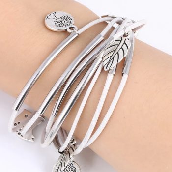Fleepmart New Leather Wrap Bracelets For Women Sliver Color Leaf Bird Multiple Layers Charm Bracelet & Bangle Party Fashion Jewelry