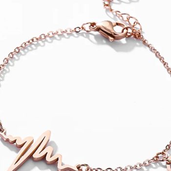 Fleepmart Stainless Steel Fashion Upscale Jewelry Rose Gold Color Love Heart Heartbeat Frequency Charms Chain Bracelet For Women