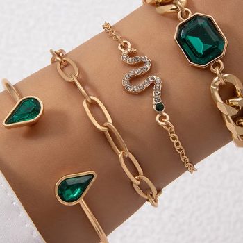 Fleepmart Fashion Versatile Green Diamond Bracelet Set Imitation Gem Personalized Snake Multi layered Bracelet for Women