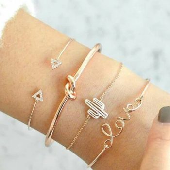 Fleepmart 4pcs/Set Bohemian Bangle Sets Crystal Bangle for Women Letter Knot Charm Hand Cuffs Gold color Bracelet Femme Gift