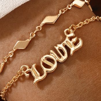 Fleepmart Romantic Love Gold Color Bracelets for Women New Trendy Letter Alloy Metal Adjustable Valentine's Day Jewelry Gift