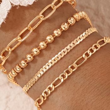 Fleepmart Bohemian Beaded Bracelets for Women Punk Thick Chain Hollow Geoemtry Alloy Metal Adjustable Jewelry 4pcs/sets