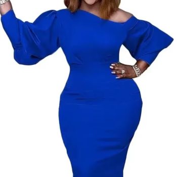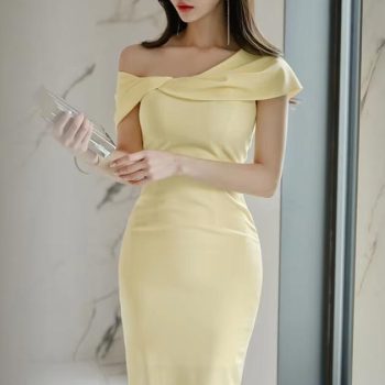Fleepmart Summer Stylish Split Bodycon Mid-Length Dress Elegant Slash Neck Women Solid Package Hip Dress