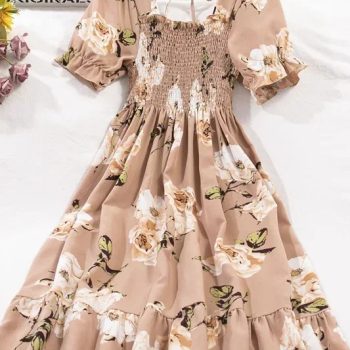 Fleepmart Spring Summer Chiffon Dresses Fashion Female Elastic Waist Short Sleeve Pleated Casual Dress Women A-line Dresses Vestidos