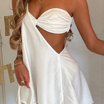 Fleepmart Women Elegant Hollow-Out A-line Satin One Shoulder Wrap Chest Club Party Lady Backless Short Dress