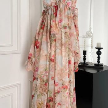 Fleepmart Elegant 3D Floral Sling Long Women Retro Backless Pleated Maxi Evening Spring Chic Street Party