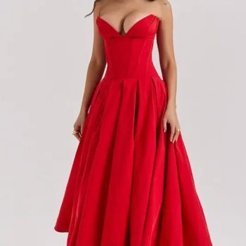 Fleepmart V-neck High Waist Long Women’s New Sexy Solid Color Strapless Evening Elegant Sleeveless Long Dress