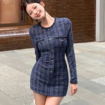 Fleepmart High Quality Women French Vintage Small Fragrant Long Sleeved Party Girl Sexy Short Dress