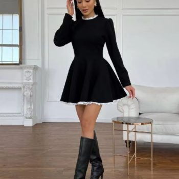 Fleepmart Black Lace Mini Women Patchwork High Waist Elegant Vintage Summer Patchwork Party Dress