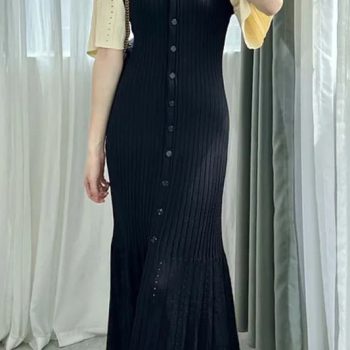 Fleepmart Summer Spring New French Elegant Fragrance High-end Slimming Knitted Mermaid Dress Hollow Slimming Fish Tail Knit Dress