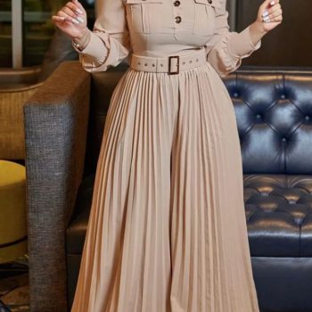Fleepmart African Elegant Fashion Women Pleated Jumpsuits Long Sleeve Wide Leg Pants Rompers Party Office Outfits With Belt 2024
