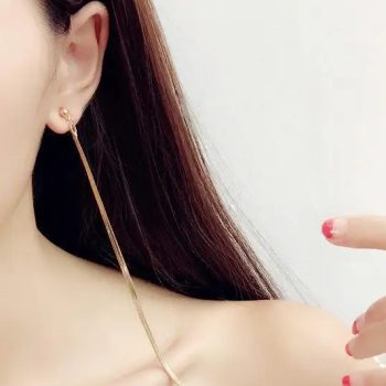 Fleepmart Elegant Simple Metal Thin Chain Temperament Earrings Korean Personality Fashion Long Tassel Earrings Ladies Gifts Wholesale