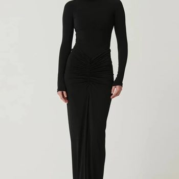 Fleepmart Autumn Women Dresses New Streetwear Solid Sexy Fashion Folds O-Neck Long Sleeves Casual Slim Maxi Dresses Elegant Knitted Dress