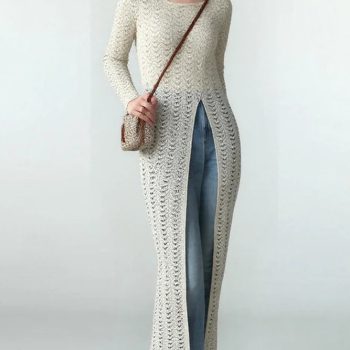Fleepmart New Fashion Knitted Sexy Split Dress for Women Summer Casual Holiday Bandage Beach Dress O Neck Sexy Evening Party Dresses Robe