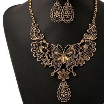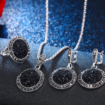 Fleepmart Vintage Crystal Round Jewelry for Women Charm Necklace Earrings Color Black Fashion Party Earring Jewelry New arrival