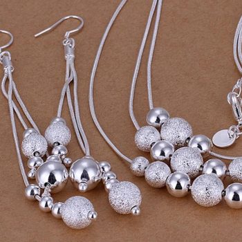 Fleepmart 925 Sterling silver wedding party jewelry fashion retro charm beads Women lady nice necklace Drop Earrings jewelry set