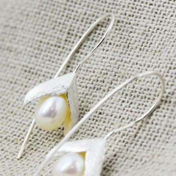 Fleepmart New Fashion Temperament Handmade Flower Silver Plated Jewelry Ear Hook Natural Drawing Pearl Elegance Earrings