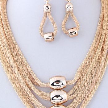 Fleepmart Women Metal Choker Necklaces Trendy Multilayer Twist Torques String Geometric Clavicle Chain Punk Jewelry Statement