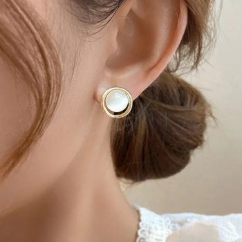 Fleepmart Korean Design Opal Round Stud Earring Women Geometry Jewelry Christmas Girlfriend Earring