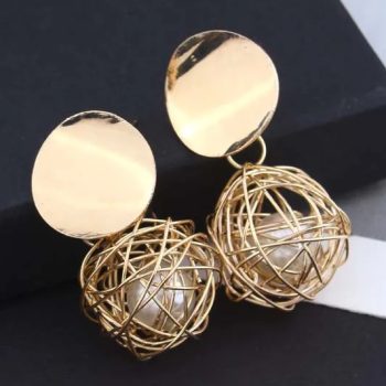 Fleepmart Simple Retro Geometric Earrings Woven Ball Imitation Pearl Round Metal Female Accessories