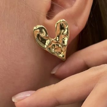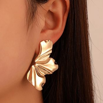 Fleepmart Big Heart Golden Stud Earrings Women Simple Liquid Irregular Fold Smooth Creative Jewelry