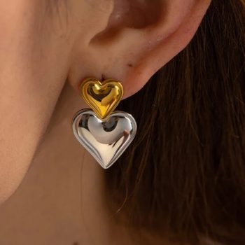 Fleepmart Vintage 18K Gold Plated Stainless Steel Double Heart Shaped Drop Earrings Women Jewelry Gift