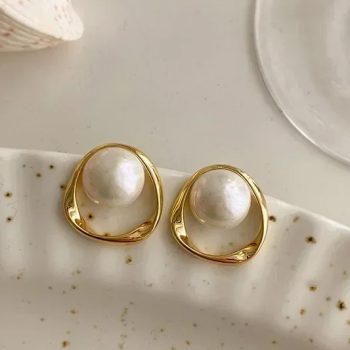 Fleepmart Metal Round Gold Color Pearl Earrings Women Vintage Elegant Irregular Earrings Wedding Jewelry