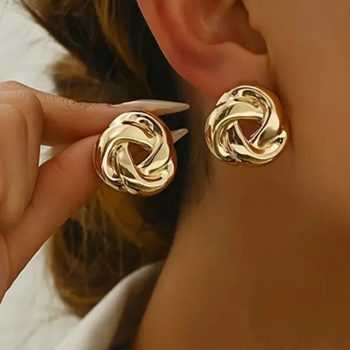 Fleepmart Tiny Metal Stud Women Twist Round Earrings Small Unusual Earrings Fashion Jewelry