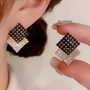 Fleepmart Square Big Full Crystal Rhinestone Stud Women New Geometry Jewelry Christmas Girl Earring