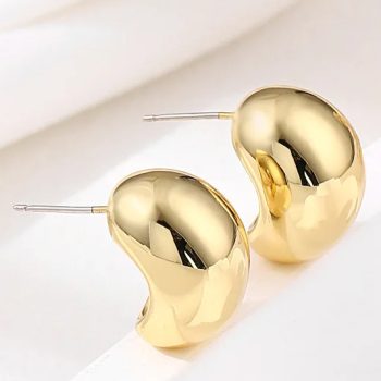 Fleepmart New Beans Shape Women’s Stud Smooth Metal Korean Fashion Small Earrings Ear Jewelry