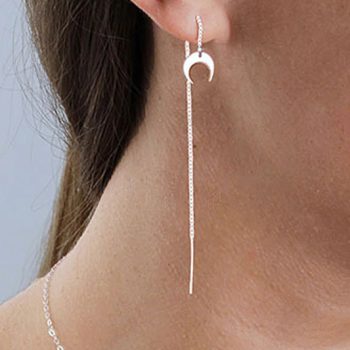 Fleepmart Crescent Moon Threader Earrings, Long Chain Earring, Pull Through Earring, Evening Earrings, Statement Pearl Jewelry Gift