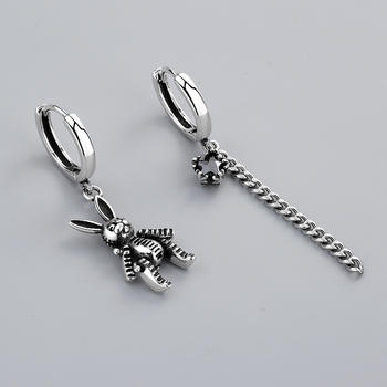 Fleepmart Prevent Allergy 925 Sterling Silver Vintage Earring for Women Asymmetry Rabbit Long Tassels Ear Jewelry Party Gift