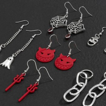 Fleepmart 6Pcs/Set Halloween Earrings Set for Female Girl Skull Spider Web Mask Ghost Dangle Earrings Punk Gothic Jewelry Gift