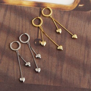 Fleepmart 925 Sterling Silver 2021 Double Heart-shaped Tassel Hoop Earrings For Female Fashion Trend Cute Mujer Collares Party