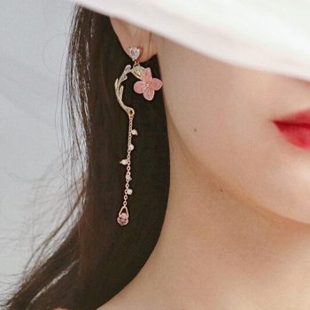 Fleepmart 2021 New Korean Pink Flowers Leaves Pendant Earrings Flower Tassel Earrings for Women Drop Earrings Jewelry Earrings