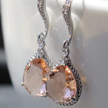 Fleepmart Unique Champagne Pear Cubic Zirconia Dangle Earrings Women Simple Design Dance Party Daily Wear Statement Jewelry Gift