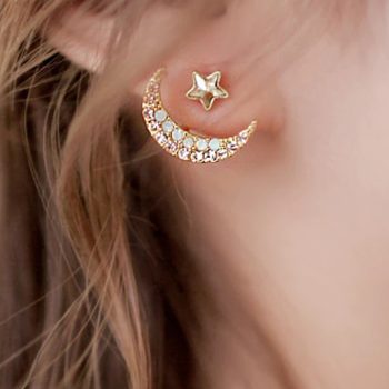 Fleepmart Classical Moon Star Stud Earrings for Women Exquisite Shiny Crystal Stone Gold Alloy Metal Party Jewelry Серьги