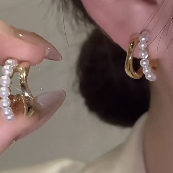 Fleepmart Fashion Women’s Round White Pearl Hoop Earrings 2020 Korean Gold Large Circle Temperament Earrings Jewelry Wholesale