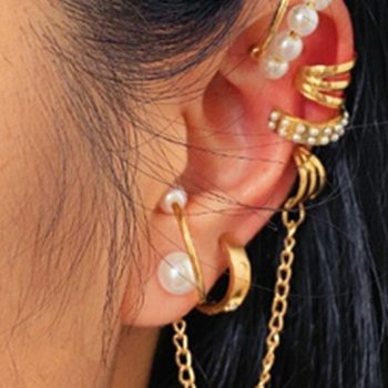 Fleepmart Gold Color Heart Crystal Ear Clip Earrings for Women Round Leaves No Piercing Ear Cuffs Earring Set Vintage Fashion Jewelry