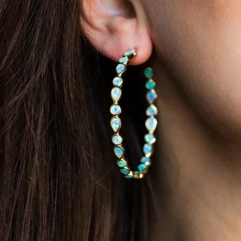Fleepmart 18KC Gold Plate Opal Big Hoop Earrings Delicate Women’s Fashion Moonstone Waterdrop Crystal Hoops Party Work Beautiful Earrings