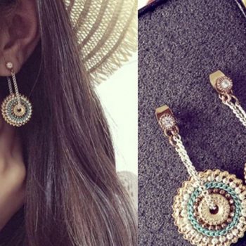 Fleepmart Bohemian Round Handmade Flower Chain Wrapped Drop Dangle Earrings Ethic Women Jewelry Gifts For Her