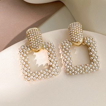 Fleepmart 2021 New Fashion Sweet Pearl Joker Senior Drop Earrings Elegant Contracted Geometric Square Senior Women Earrings Atmosphere
