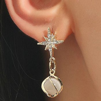 Fleepmart Six Pointed Star Earrings Women Geometric Eardrop Woman High Quality Rhinestone Fashion Cute Kpop Gold Color Alloy Naszyjnik