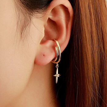 Fleepmart Cross Earrings Women Geometric Rhinestone Ear Bone Clip Charms Woman Creative Fashion Single Kpop Silver Color Alloy